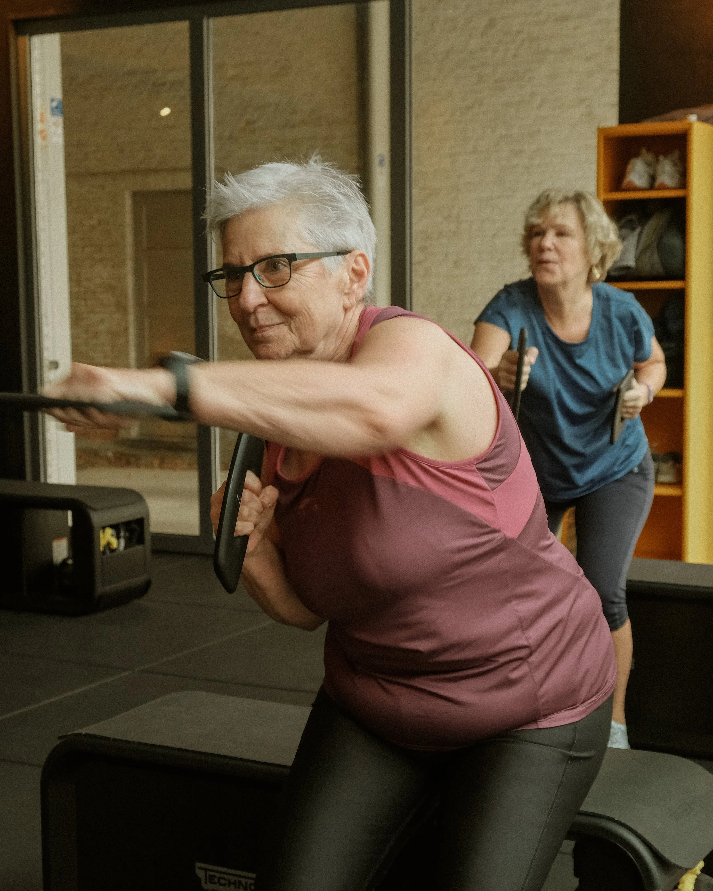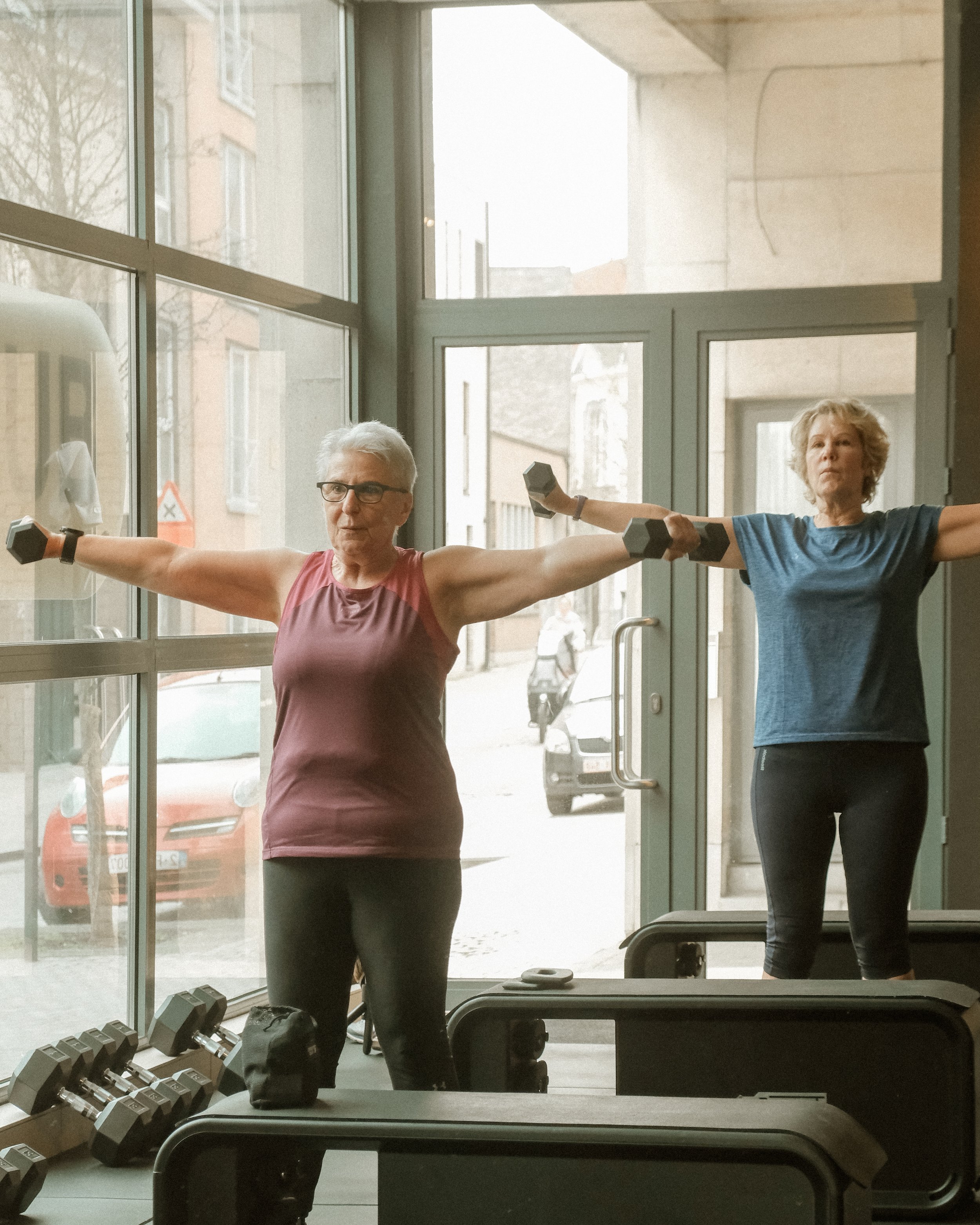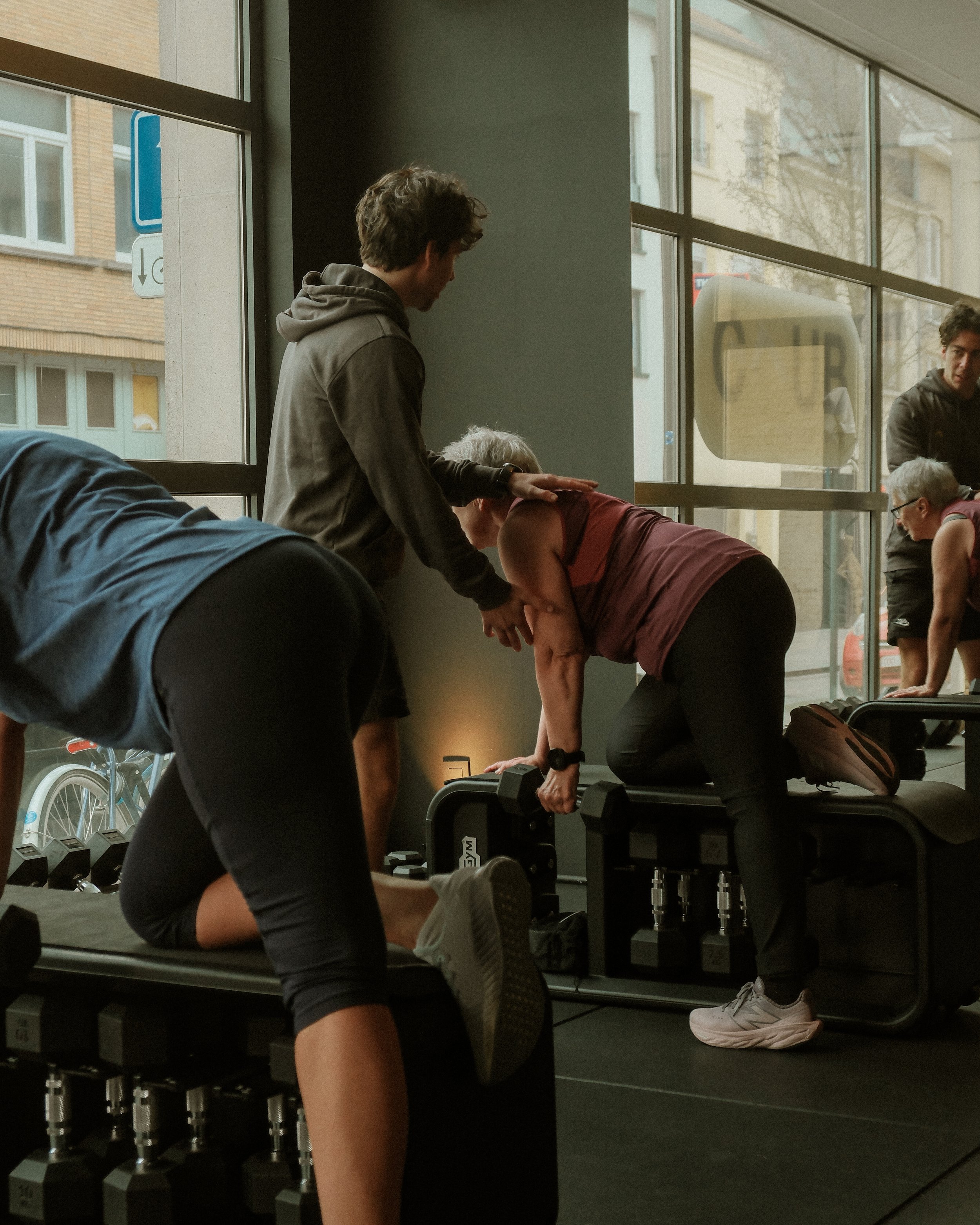 We trainen het volledige lichaam. Met aandacht voor spiergroepen die in deze levensfase extra belangrijk worden.
